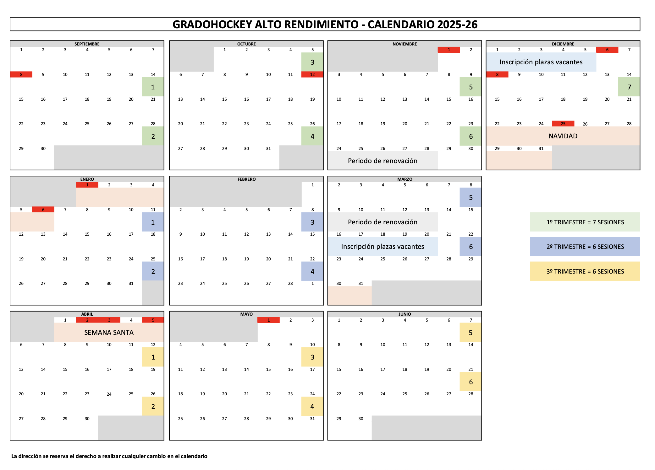 Calendario de las sesiones y periodo de inscripción en cada trimestre